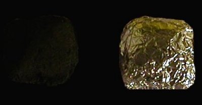 From a distance, the aluminium foil greatly outshines the black charcoal.