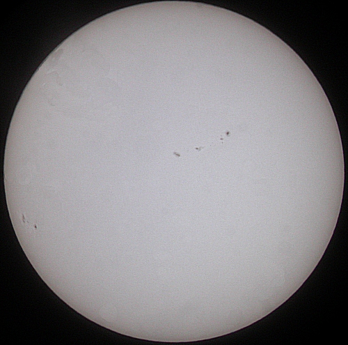 The Baader Astro-Solar film that was placed over both 8-inch and 3-inch telescopes filtered out most of the yellow light and left the bluish colour that can be seen in the other images.