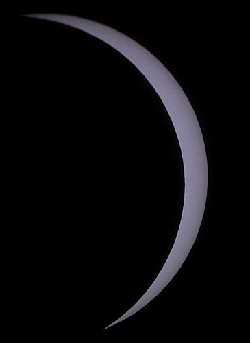At about 1:15 p.m. CDT, I began to see the Sun's phase reach a point at which I had never seen before. From that time to totality, I would be seeing something that I had never seen before. The Sun's crescent would become thinner and thinner until the Moon totally covered the Sun.