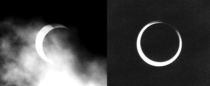 The annular solar eclipse of May 10, 1994. The Moon did not appear large enough to cover the Sun, producing a ring. Images by Michael A. Earl - Kingston, Ontario Canada