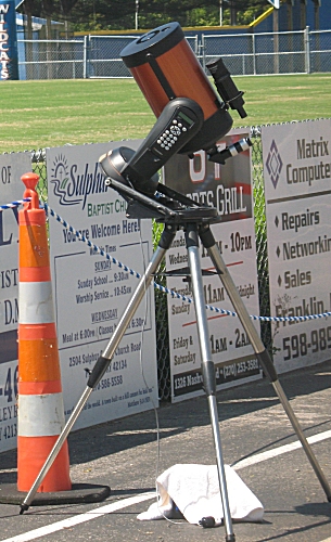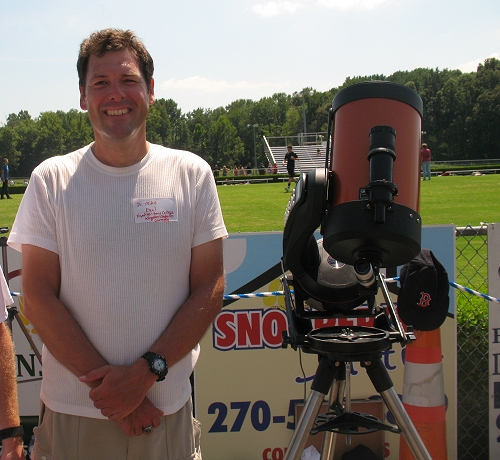 Dr. Mike stands beside his Celestron 8i 8-inch aperture telescope. The telescope has been at star parties all over Ontario, observed total lunar eclipses in Pennsylvania and now has observed a total solar eclipse in Franklin, Kentucky. The telescope has been very reliable and tough over its 10 years of use; so has Dr. Mike :-).