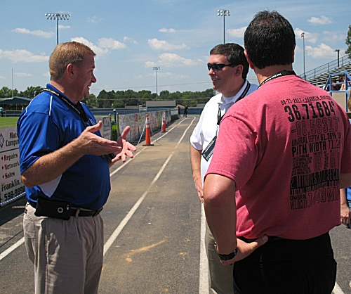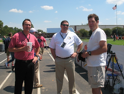 Dr. James Flynn (left, red shirt), the Superintendent of the Simpson County School District, Dr. Stephen Pruitt (center, white shirt), the Kentucky Commissioner of Education and Dr. Mike Earl (right, white shirt), pose for a portrait.