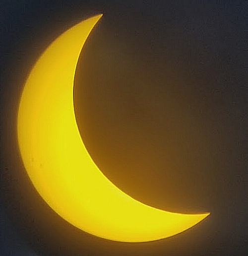 The top and bottom of the Sun's crescent now appeared mottled because the Moon's rough surface was blocking different portions of the Sun's disk. The crescent's bottom portion appeared very striking.