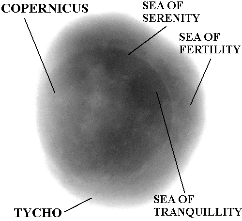 Totality! This is the same image as the one directly above, but with the prominent lunar features labelled. The large lunar seas, such as the Sea of Tranquillity and the Sea of Serenity, were the easiest to spot, with the largest craters being somewhat more difficult to recognize.