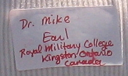 Dr. Mike's nametag that he wore throughout the event. This simple nametag was the first one that he wore that featured his new title of Dr. The Royal Military College of Canada is proudly displayed on the nametag.