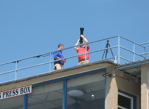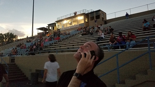 Photographers atop the James Mathews Stadium of the Franklin Simpson High School prepare to image the eclipse.