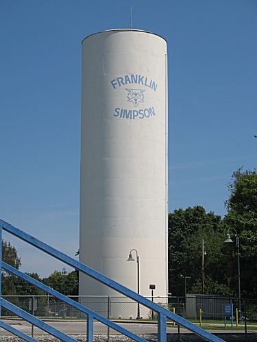 The Franklin Simpson High School tower. The symbol in the center is a wildcat. Their football team is called the "Wildcats".